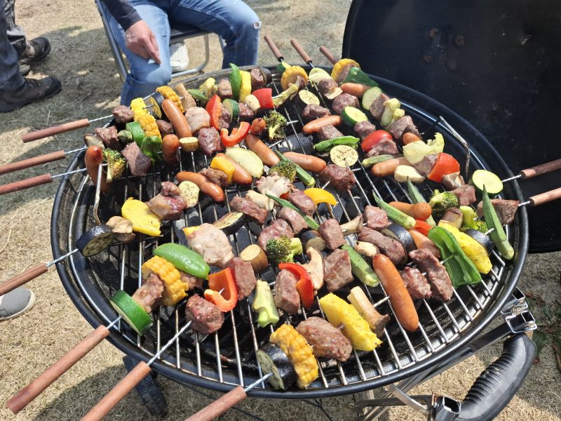 BBQで焼く串をつくるのも楽しみの一つ。色々な食材の中から彩りなどを考えて、思い思いに串差ししました。こういった作業をしながらも色々な話に花が咲きました。