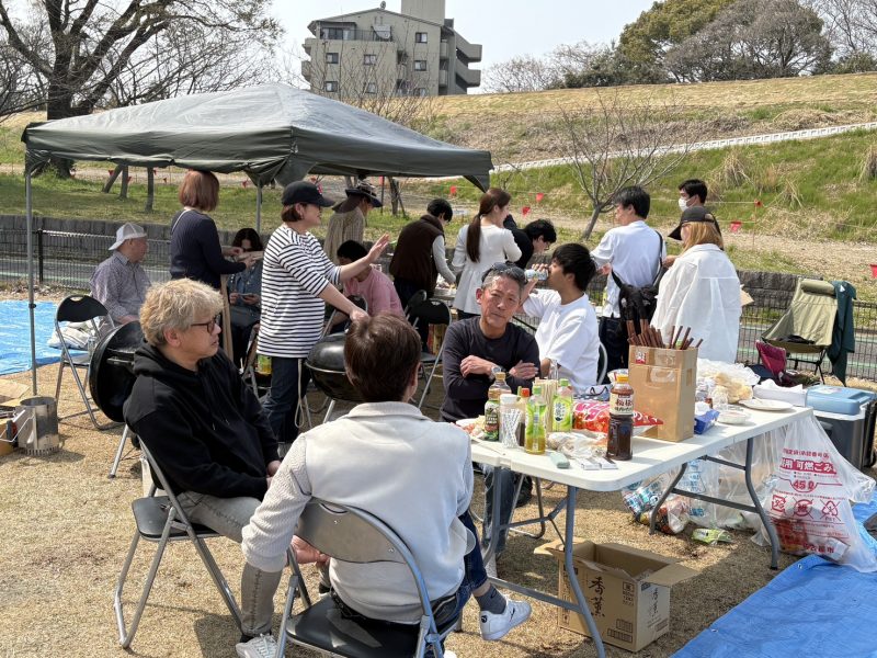 桜が見ごろを迎えた3月最後の土曜日に弊社恒例のお花見BBQが開催されました。とても天気のいい日で、朝から暖かく、準備をしながら汗ばむほどの陽気でした。恒例行事であるお花見BBQは、普段からお付き合いのある関係業者さんと一緒においしいご飯を食べながら、会話を楽しみつつ親睦を深めています。
