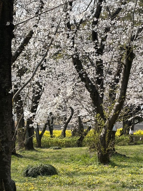 イベントを開催した会場である庄内緑地公園は、桜の花が綺麗に咲いていました。桜と一緒に菜の花も楽しめました。