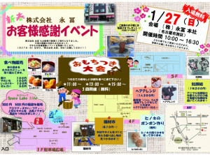 いよいよ今週末の日曜日、1月28日、永冨本社にて「お客様感謝イベント」開催です!どなたでもご参加OKのイベントです!「もちつき大会」(3回...